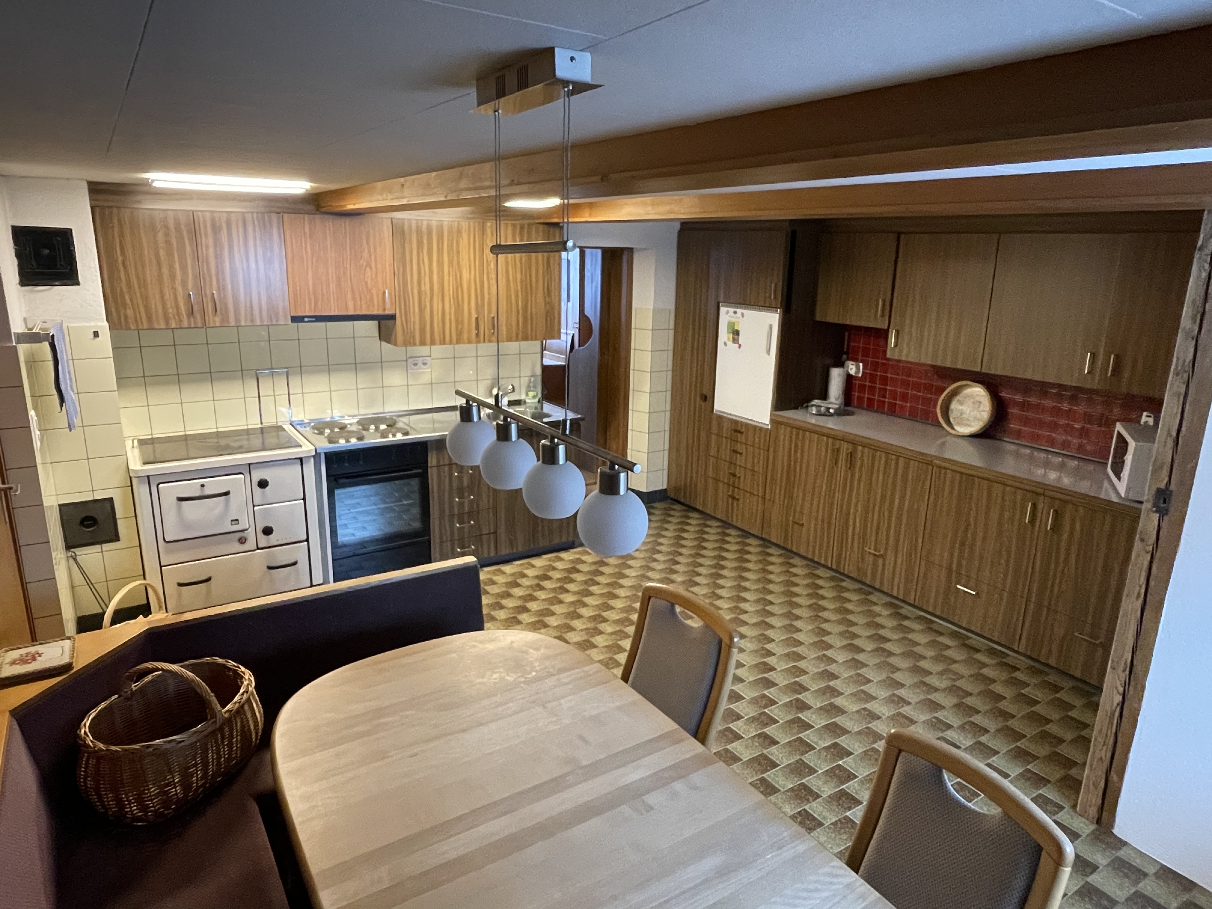 Das Haus wurde vor ca. 300 Jahren gebaut. Die Räume sind zum Teil noch im Originalzustand, gross und heimelig. Insgesamt gibt es 6 Schlafzimmer, 2 Stuben, eine grosse Küche, ein grosses Badezimmer, 3 separate Toiletten mit Lavabo und ein kleines Badezimmer mit Toilette, Dusche und Lavabo.