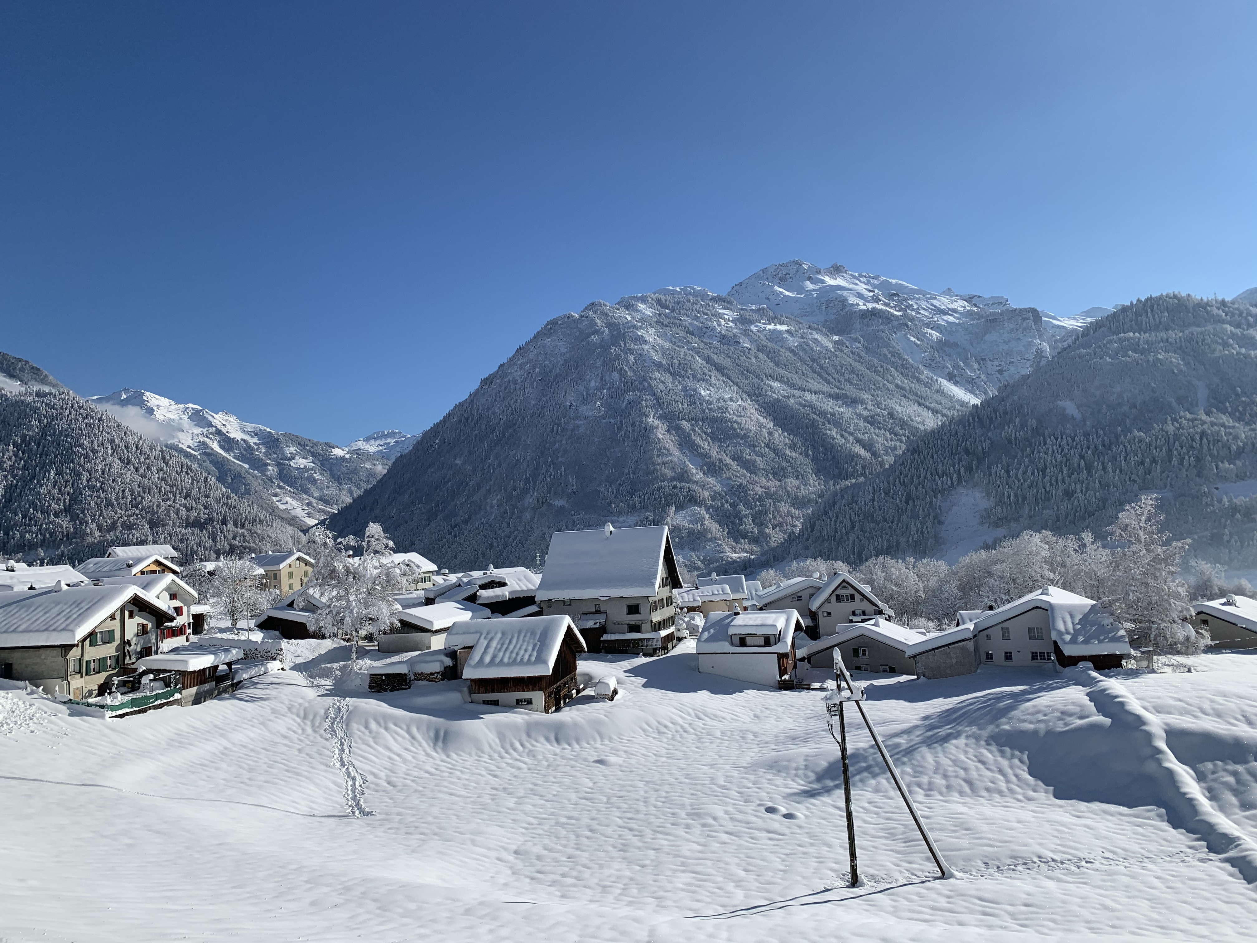 Fast alle Zimmer sind südlich ausgerichtet, so dass man von jedem Raum eine fantastische Sicht auf unseren Hausberg, den Tödi hat. Das grosse Badezimmer haben wir im Frühjahr 2021 umgebaut. Die Küche ist noch alt. Es hat einen Geschirrspüler, einen Elektroherd und einen Holzherd, welcher eine gemütliche Atmosphäre schafft, wenn es draussen stürmt und schneit. Im ganzen Haus gibt es WLAN.